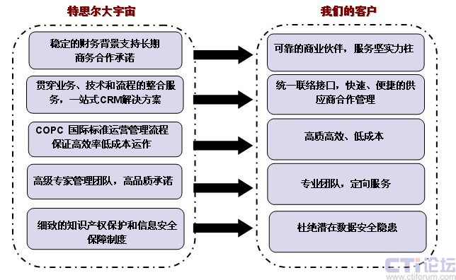 為了在21世紀(jì)取得更大的發(fā)展,特思爾大宇宙?zhèn)鞒心腹総ranscosmos多年經(jīng)營(yíng)理念及微創(chuàng)技術(shù)優(yōu)勢(shì),沿襲“營(yíng)銷鏈管理”這一嶄新外包服務(wù)概念。我們力求成為中國(guó)呼叫中心營(yíng)銷鏈管理服務(wù)的先驅(qū)者,通過(guò)實(shí)時(shí)營(yíng)銷活動(dòng)把企業(yè)和消費(fèi)者緊密聯(lián)系在一起的呼叫中心/互動(dòng)聯(lián)絡(luò)中心的聯(lián)動(dòng),使?fàn)I銷活動(dòng)最適化和高效化,提高顧客滿意度,幫助客戶企業(yè)贏得更多潛在顧客,增加銷售額,成為客戶企業(yè)堅(jiān)實(shí)商業(yè)合作伙伴。