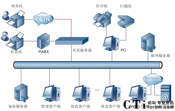 圖1-1 三匯傳真服務(wù)器典型組網(wǎng)圖(單服務(wù)器)