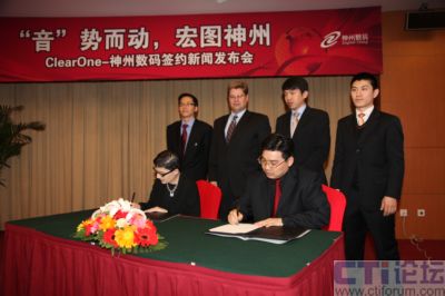 2009年3月10日,國內最大的整合IT服務提供商神州數碼和國際領先的高端音頻會議系統(tǒng)供應商ClearOne在京簽約,共同拓展國內音頻會議系統(tǒng)市場,依托ClearOne的技術、產品、行業(yè)優(yōu)勢和神州數碼強大的市場號召力及運維能力,開創(chuàng)國內音頻會議系統(tǒng)領域全新格局,為企業(yè)、教育、培訓、醫(yī)療及政府等行業(yè)客戶帶來全新震撼體驗!