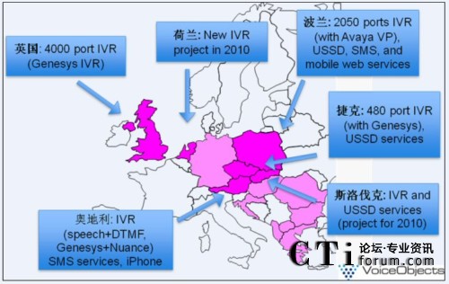 WEB和語音等渠道的整合;第二,為客戶提供簡單直觀的自助服務(wù)選項(xiàng);第三,便捷部署業(yè)務(wù),快速分析客戶行為,調(diào)整業(yè)務(wù)方式。VoiceObjects成功克服這三個(gè)挑戰(zhàn),在歐洲T-Mobile贏得多個(gè)國家的份額,并且有不斷增長的趨勢。