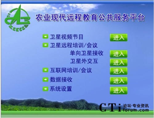 會(huì)議所使用的農(nóng)業(yè)現(xiàn)代遠(yuǎn)程教育平臺將先進(jìn)的多媒體寬帶DVB衛(wèi)星通信系統(tǒng)和全面的網(wǎng)絡(luò)遠(yuǎn)程教育培訓(xùn)/會(huì)議系統(tǒng),天(衛(wèi)星網(wǎng))地(互聯(lián)網(wǎng))合一,集成廣播、電視和網(wǎng)絡(luò)的功能,形成了廣覆蓋、大容量、多功能、低成本、快捷高效的遠(yuǎn)程教育培訓(xùn)網(wǎng)絡(luò)、技術(shù)培訓(xùn)資源傳輸通道和網(wǎng)絡(luò)視頻會(huì)議系統(tǒng),是面向“三農(nóng)”開展多形式多層次現(xiàn)代遠(yuǎn)程教育培訓(xùn)、科學(xué)普及、技術(shù)推廣和信息傳播的公共服務(wù)平臺。該平臺包括:單向廣播式衛(wèi)星直播系統(tǒng)、雙向衛(wèi)星交互式培訓(xùn)/會(huì)議系統(tǒng)、衛(wèi)星外交互培訓(xùn)/會(huì)議系統(tǒng)(衛(wèi)星接收,互聯(lián)網(wǎng)回傳)和地面互聯(lián)網(wǎng)雙向交互培訓(xùn)/會(huì)議系統(tǒng),適用于純衛(wèi)星網(wǎng)絡(luò)和衛(wèi)星網(wǎng)、互聯(lián)網(wǎng)混合接入等各種網(wǎng)絡(luò)環(huán)境。