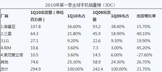 被RIM擠出前五大廠商行列的是老牌手機大廠摩托羅拉公司,其季度出貨量為850萬部。摩托羅拉自2004年IDC開始進行全球手機季度銷量統(tǒng)計以來,就一直是前五大廠商之一,2004年時還排名第二位。不過在此之后,其出貨量和市場占有率一直在下滑,最終跌出了前五行列。