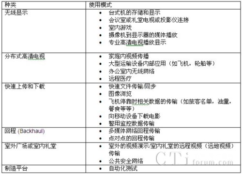 在表1中例舉出了當前一些比較超前的應用模式,這些模式需要更高的數(shù)據(jù)傳輸量來支持“無線辦公”的要求。