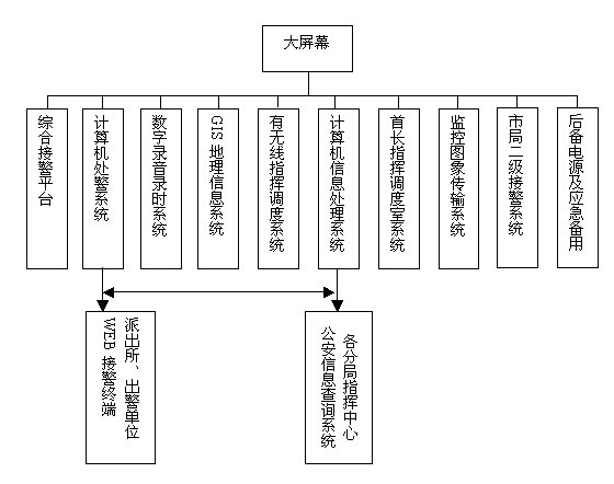 本次建設需要采用綜合通信技術,將110、119、122系統(tǒng)的計算機網(wǎng)絡和有、無線通信網(wǎng)有機互聯(lián),建成集接處警信息獲取、統(tǒng)計、查詢、發(fā)布于一體,并通過地理信息和多媒體大屏幕顯示等輔助系統(tǒng)的綜合指揮調(diào)度,實現(xiàn)110、119、122快速反應、信息共享的目的。為此,各系統(tǒng)應分別具有下述功能: