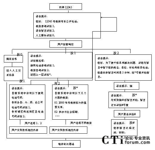 CTI論壇(ctiforum)07月10日消息: 12345政府熱線,是一個建立在開放的系統(tǒng)平臺之上,采用全中文、圖形化交互式的操作界面,提供開放的接口,能與其他信息、服務(wù)系統(tǒng)連接的系統(tǒng),該系統(tǒng)的設(shè)計開發(fā)具有先進性、安全可靠性、可擴充性、易用性、友好性等特點。通過政府12345熱線的工作人員在信息系統(tǒng)的平臺上以7X24小時方式運行工作。在該系統(tǒng)工程的設(shè)計上還要充分考慮項目實施后可能發(fā)生的突發(fā)性規(guī)模放大量,為未來的發(fā)展趨勢,預(yù)留足夠擴容空間,并考慮到由此可能造成的對系統(tǒng)架構(gòu)、技術(shù)實施方案、資源配置等所進行的相應(yīng)改動,及如何提供開發(fā)工具去滿足不同時期的需要。