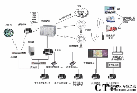 根據(jù)公安部“金盾工程”相關(guān)規(guī)定,以HXD09-II智能語音調(diào)度系統(tǒng)為核心的應(yīng)急聯(lián)動通信系統(tǒng),將公安110、消防119、交警122報警服務(wù)臺整合成統(tǒng)一的多功能綜合指揮調(diào)度平臺,加強了不同警種及聯(lián)動單位之間的配合協(xié)作,實現(xiàn)特殊、突發(fā)事件應(yīng)急反應(yīng)快速、高效,信息處理及時、全面。