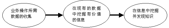知識管理是在應用操作的基礎上發(fā)展起來的,它經(jīng)歷了數(shù)據(jù)收集、信息挖掘和知識發(fā)現(xiàn)的三個歷程,如下圖所示。