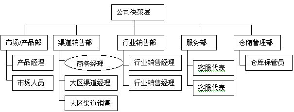 除分銷渠道管理之外,紫光網(wǎng)聯(lián)的前端管理組織機(jī)構(gòu)還包括市場/產(chǎn)品部、行業(yè)銷售部、服務(wù)部和倉儲管理部門。示意圖如下: