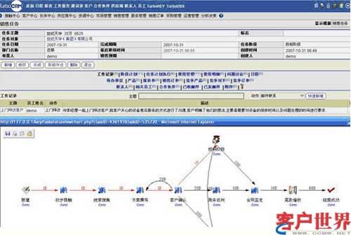 對(duì)于復(fù)雜的任務(wù),TurboCRM系統(tǒng)提供了流程定制功能,不僅可以定制靈活流程,也可定制固定流程,將公司的業(yè)務(wù)流程固化在系統(tǒng)中,以指導(dǎo)員工按流程辦事。