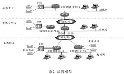 博達(dá)通信金融行業(yè)VoIP解決方案的組網(wǎng)模型是一個(gè)具有三級(jí)分支機(jī)構(gòu)的樹形網(wǎng)絡(luò),網(wǎng)絡(luò)結(jié)構(gòu)簡單如圖2所示。