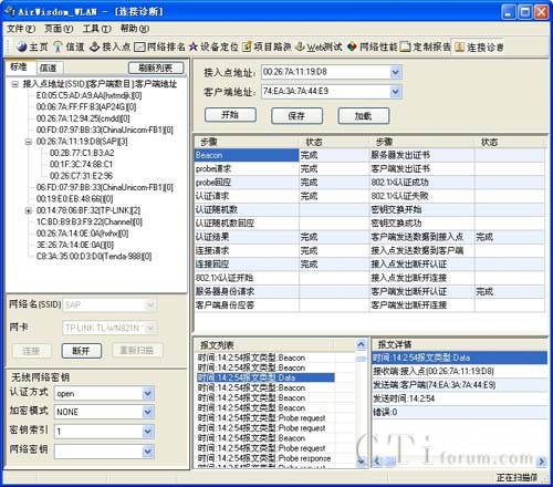 連接診斷功能實(shí)時(shí)分析顯示接入點(diǎn)同客戶端之間連接步驟的完成狀況,為分析網(wǎng)絡(luò)接入問(wèn)題提供支持。
