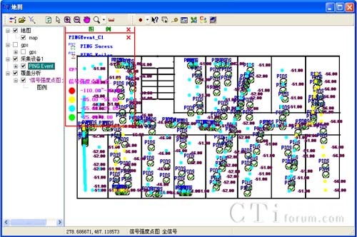 地圖可以顯示信道、指定的AP、指定網(wǎng)絡(luò)的信號(hào)強(qiáng)度、噪聲、干擾強(qiáng)度、丟包率等點(diǎn)圖,并通過(guò)圖例和不同顏色顯示在地圖上,用戶通過(guò)點(diǎn)圖可以很直觀的發(fā)現(xiàn)某個(gè)區(qū)域存在弱覆蓋、丟包率過(guò)高、同頻干擾、鄰頻干擾等網(wǎng)絡(luò)問(wèn)題。