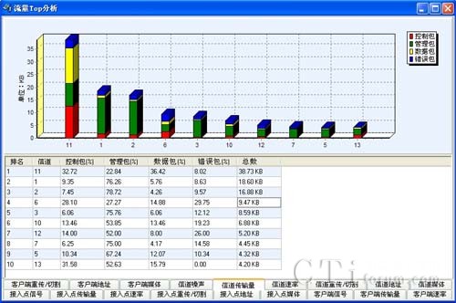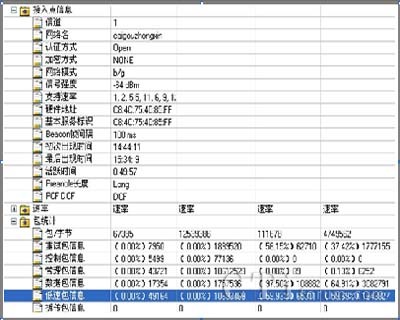 該系統(tǒng)能夠向用戶提供豐富的802.11 a/b/g/n無(wú)線參數(shù),包括信號(hào)強(qiáng)度覆蓋參數(shù),同頻干擾及鄰頻干擾參數(shù),管理幀、控制幀、數(shù)據(jù)幀及各種無(wú)線幀傳輸速率的統(tǒng)計(jì)參數(shù)等;系統(tǒng)能基于以上各類統(tǒng)計(jì)參數(shù),并通過(guò)實(shí)時(shí)進(jìn)行各種數(shù)據(jù)業(yè)務(wù)測(cè)試,獲取網(wǎng)絡(luò)的數(shù)據(jù)業(yè)務(wù)參數(shù)指標(biāo),分析WLAN網(wǎng)絡(luò)質(zhì)量問(wèn)題。
