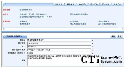 要實現(xiàn)此目的,IT支撐系統(tǒng)將高技能座席的處理能力“推送”給普通座席。第一章我們論述了IT支撐系統(tǒng)可以以客戶應(yīng)用場景為核心,通過分析流程分析客戶訴求找到客戶真正的需求。可以將這一思路推演下去,針對客戶的某個具體需求,呼叫中心制定統(tǒng)一的解決方案。我們以下面的“預(yù)存話費換手機”為案例。通過先期溝通,座席已經(jīng)知曉這是客戶的真正訴求,只需要選擇好“預(yù)存話費換手機”的業(yè)務(wù)類型,IT支撐系統(tǒng)會顯示出集成在一個頁面中的全套解決方案:處理此訴求可能用到知識庫中的三個知識點;需要查詢的客戶信息,經(jīng)常給客戶發(fā)送的短信內(nèi)容;處理此訴求可能執(zhí)行的登記任務(wù),……
