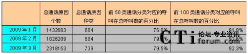 說明:通話原因個數(shù)比通話個數(shù)略多,因為一通電話有可能對應(yīng)多個通話原因