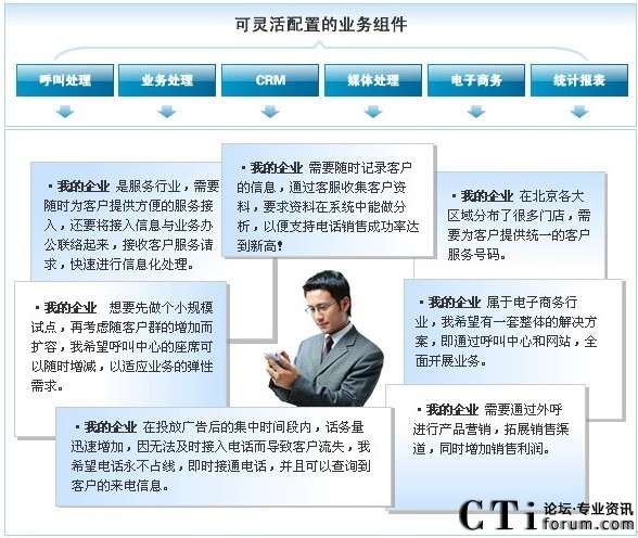 - 全面電子商務(wù)業(yè)務(wù)管理模塊,實現(xiàn)呼叫中心與業(yè)務(wù)的完美結(jié)合;