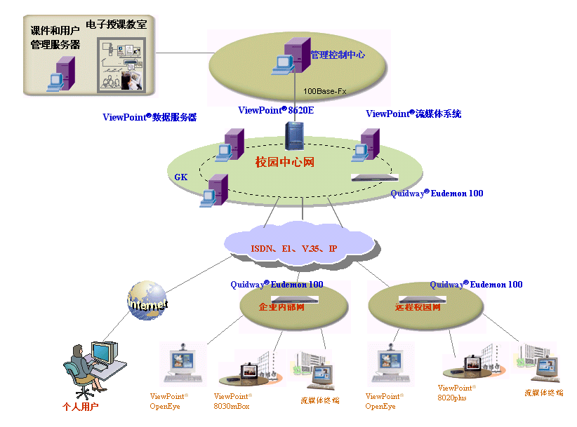 遠(yuǎn)程教學(xué)視訊系統(tǒng)組網(wǎng)方案(點擊放大)