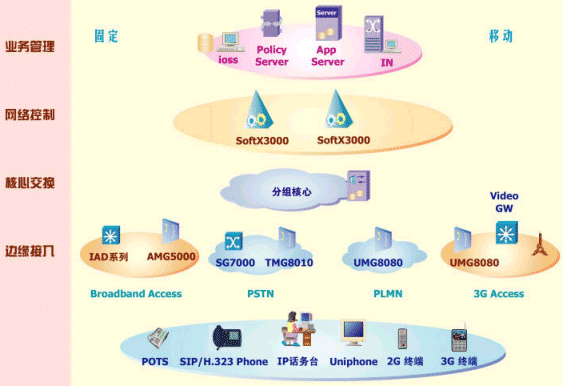 采用軟交換技術,將傳統(tǒng)交換機的功能模塊分離為獨立網絡部件,各部件按相應功能進行劃分,獨立發(fā)展。采用業(yè)務與呼叫控制分離、呼叫控制與承載分離技術,實現(xiàn)開放分布式網絡結構,使業(yè)務獨立于網絡。通過開放式協(xié)議和接口,可靈活、快速地提供業(yè)務,個人用戶可自己定義業(yè)務特征,而不必關心承載業(yè)務的網絡形式和終端類型。
