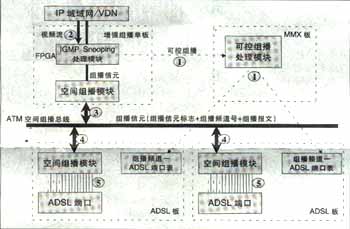 可實(shí)現(xiàn)高效的兩級組播;诳臻g總線上的組播信元技術(shù)實(shí)現(xiàn),與組播用戶數(shù)無關(guān),同一節(jié)目即使所有用戶加入該頻道,僅需復(fù)制一份,不用逐個(gè)用戶復(fù)制到每個(gè)用戶端口,極大節(jié)省了背板帶寬,減輕IP上行負(fù)擔(dān)。可實(shí)現(xiàn)高性能硬件組播轉(zhuǎn)發(fā)。IP上行板采用超大規(guī)模FPGA硬件邏輯處理組播報(bào)文,ADSL板采用空間組播處理硬件芯片自動(dòng)完成向每個(gè)ADSL端口(用戶)的組播復(fù)制,每ADSL端口組播帶寬6M。