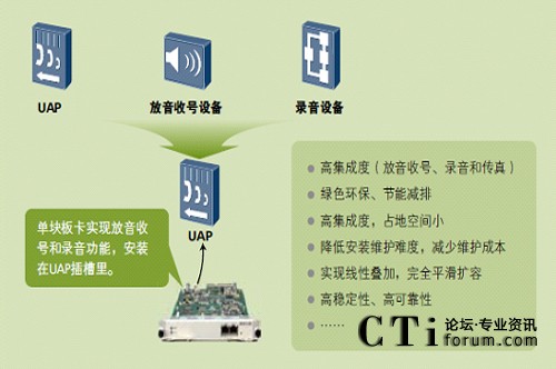 隨著全球氣候的變化,低碳經(jīng)濟已經(jīng)成為關注焦點。一體化接入平臺UAP2100內(nèi)置了寬窄帶語音交換和排隊功能,在僅2U的高度之內(nèi)實現(xiàn)了寬窄帶中繼接入和錄音、放音等媒體資源處理能力,無需外置媒體服務器和中繼網(wǎng)關,低能耗元器件的使用和高集成度設計,有效降低了空間占用和能源消耗,使您在不經(jīng)意間就實現(xiàn)了綠色聯(lián)絡中心平臺,降低您可觀的運行成本。