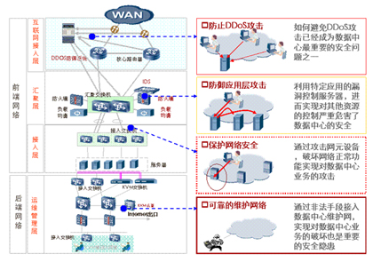 隨著各種黑客工具的推陳出新,數(shù)據(jù)中心面臨的安全威脅越來越大。數(shù)據(jù)中心網絡的安全必須從多個維度進行設計。