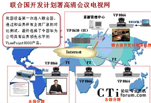 聯(lián)合國(guó)開發(fā)計(jì)劃署采用了華為ViewPoint® 8000綜合視訊系統(tǒng),視頻會(huì)議采用業(yè)界最新的H.264視頻編碼技術(shù),節(jié)省了線路帶寬資源,同時(shí)獲得了清晰、流暢的圖像;該視訊會(huì)議系統(tǒng)同時(shí)融合了IP語(yǔ)音系統(tǒng),擴(kuò)展了視頻會(huì)議覆蓋的范圍,實(shí)現(xiàn)了視頻會(huì)議、電話會(huì)議和電視電話混合會(huì)議;視訊會(huì)議系統(tǒng)建成后,以清晰的聲音、圖像和通過H.239雙流實(shí)現(xiàn)的PC桌面真實(shí)還原,實(shí)現(xiàn)了聯(lián)合國(guó)開發(fā)計(jì)劃署遠(yuǎn)程會(huì)議、協(xié)同審批文件等。