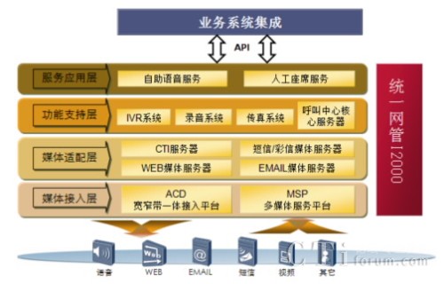 華為多媒體聯(lián)絡中心平臺是具有人性化處理能力的智能設備平臺。它能夠支持多種綜合業(yè)務的受理,包括投訴、建議 、咨詢、話費查詢、電話號碼查詢、綜合信息服務等各種人工或自動業(yè)務。它能夠提供強大的業(yè)務生成能力,使運營 者可以按照自己的實際需求生成、修改和調(diào)整業(yè)務。華為多媒體聯(lián)絡中心就象一個“業(yè)務超市”,提供了全面的業(yè)務 組件,運營者根據(jù)實際需求可以挑選、組合、編輯這些業(yè)務組件,從而設計出滿足實際需求的業(yè)務系統(tǒng)。