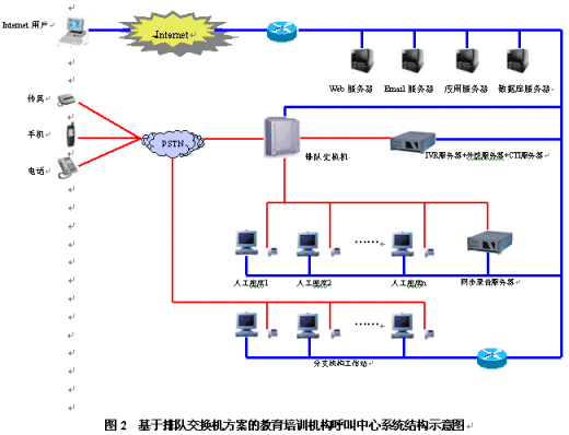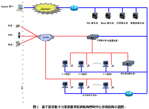 教育培訓(xùn)機構(gòu)呼叫中心系統(tǒng)是一個集合電話語音、計算機網(wǎng)絡(luò)、數(shù)據(jù)庫等技術(shù)的綜合信息服務(wù)平臺,主要由自動語音應(yīng)答系統(tǒng)、人工座席和數(shù)據(jù)庫系統(tǒng)三部分組成。