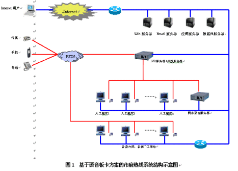 市府熱線系統(tǒng)是一個(gè)集合電話語音、計(jì)算機(jī)網(wǎng)絡(luò)、數(shù)據(jù)庫等技術(shù)的綜合信息服務(wù)平臺(tái),主要由自動(dòng)語音應(yīng)答系統(tǒng)、人工座席和數(shù)據(jù)庫系統(tǒng)三部分組成。