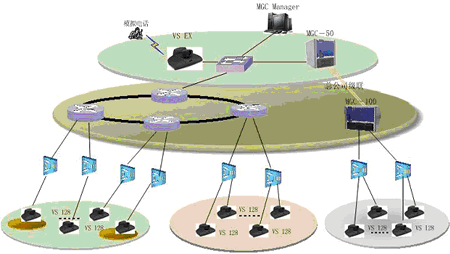 一般來說,在省公司同時參與會議的人數(shù)較多,考慮配置比較大的系統(tǒng),由某一領導召集一些相關成員在此開會;在地市公司同時參與會議的人數(shù)較少,只是一些主要領導參加會議,考慮配置比較小的系統(tǒng);同時,為了實現(xiàn)終端之間管理和傳送音頻、視頻和數(shù)據(jù),需要MCU來協(xié)調(diào)終端的工作,并與上級MCU相級聯(lián),擴大會議的規(guī)模。另外,可以增加一套T.120服務器,該系統(tǒng)是利用多媒體技術(shù)幫助使用者對工作中的各種信息進行處理,如共享數(shù)據(jù)、共享應用程序、實現(xiàn)文件的雙向傳輸?shù)龋瑥亩鴺?gòu)造出一個多人共享的工作空間。以及增加一套VOD系統(tǒng),它集視頻采集、點播、廣播于一體,這樣就可以將視頻會議的內(nèi)容實時的錄制到本地,也可將一些培訓資料放在視頻點播里,便于對貴公司員工進行培訓,還能通過視頻廣播的功能,讓使用PC機的人員不在會議室,便可以通過瀏覽器實時的看到和聽到正在召開的會議。