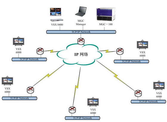 8400視頻會議終端1臺,VSX 6000視頻會議終端 25臺,PVX桌面視頻終端20臺。