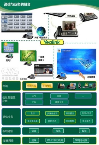億聯(lián)專注于VoIP領(lǐng)域的發(fā)展,見證了整個(gè)終端發(fā)展過程:從由傳統(tǒng)的模擬/數(shù)字電話、IP語(yǔ)音電話、IP視頻話機(jī),到多媒體信息終端階段。每前進(jìn)一步,都擁有上一步的所有功能,并再延伸出更核心的應(yīng)用。