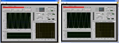 當兩個(或多個)設備一起工作并對時間有精確要求的時候,就需要在它們之間進行同步。同步是基于在兩個設備之間規(guī)定一個共同的時間參考,試想如果將不同音軌的音頻訊號分別錄在不同的磁帶機上,則必須將這兩個磁帶機的磁帶傳送軸鎖定在一起,否則將來撥放出來就會有相位上的誤差,這個過程就稱為同步。假使這兩個設備沒有進行同步,無論它們開始的時間多么一致,也會由于兩臺設備在機械結構的差異而產(chǎn)生時間漂移。同樣的,對于數(shù)據(jù)采集卡也是一樣的概念,甚至在要求上更為嚴格。而如何達到數(shù)據(jù)同步采集,最基本的要求就是不同模塊間要有相同的工作時脈與一致的觸發(fā)信號,而這個相同的時脈信號需來自于共同的外部儀器。下圖中的弦波是兩張數(shù)據(jù)采集卡在同步與異步采集同一信號源所得的波形,在左圖中因異步而存在一向位差,右圖中則是同步觸發(fā)下得到完全重迭的波形。