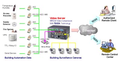 因此我們認為在遠程安全監(jiān)控系統(tǒng)上結合數(shù)據(jù)加/解密的技術己經(jīng)是一個絕對必要的程序,如圖4所示則是目前我們所提出的MPEG-4的影像壓縮技術結合TDCEA的加/解密技術可應用在數(shù)字遠程安全監(jiān)控系統(tǒng)(Digital