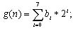 在將g(n)拆成binary形式之后,方法[8]再對每一個位bi的值作改變,其中0≦i≦7。而其對每一個位bi值作改變的方法如式(1.2)所示,而b’i代表的為bi被改變之后的值。