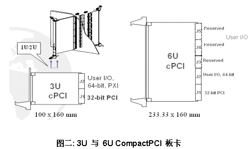 IEEE 1101.1 標(biāo)準(zhǔn), 符合Eurocard 尺寸規(guī)范,不同的是, CompactPCI 有高密度 (2mm pitch) 的接頭利于板卡的穩(wěn)定性,以及快速抽取式的把手便于更換維修。CompactPCI