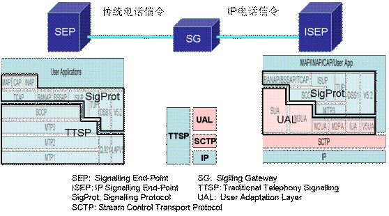 在九十年代末,IETF成立了信令傳輸(SIGTRAN)工作組來解決分組形式的電話信令在IP網(wǎng)絡(luò)上傳輸,確定電話信令的功能和性能要求,實(shí)現(xiàn)在IP網(wǎng)絡(luò)節(jié)點(diǎn)之間傳輸如SS7