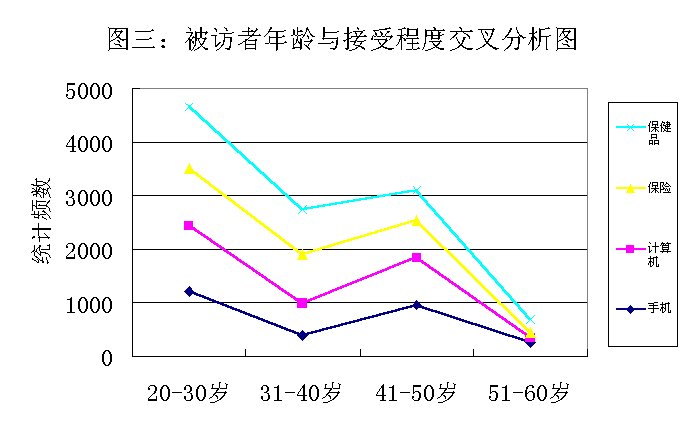 調 查 表 明 : 收 入 在 600 元 到 1500 元 之 間 的 階 層 對 電 話 購 物 的 接 受 程 度 最 高 ; 而 20 歲 到 30 歲 這 個 年 齡 段 的 人 對 電 話 購 物 的 接 受 程 度 最 高 。