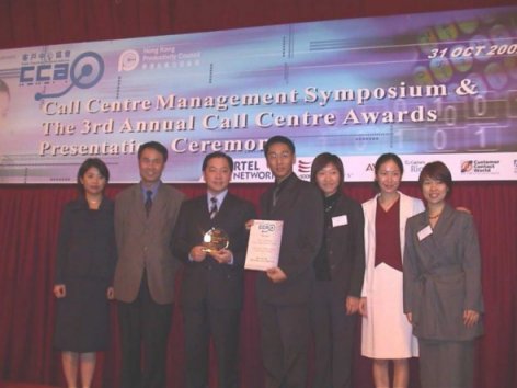 香港 2002年10月31日-在全球呼叫中心業(yè)享有盛譽的香港客戶中心協(xié)會日前宣布了2002年度各獎項獲獎名單。在今天下午舉行的第三屆年度呼叫中心頒獎典禮上,飛翱網(wǎng)訊成為年度最佳呼叫中心獎得主之一。這是繼去年以來,飛翱網(wǎng)訊連續(xù)第二年獲此殊榮。與此同時,來自于飛翱網(wǎng)訊香港公司的業(yè)務(wù)主管,Gray Ho先生被授予了呼叫中心團隊領(lǐng)導(dǎo)人優(yōu)勝獎。經(jīng)過專家評審團的層層篩選,飛翱網(wǎng)訊在各個考核指針上均有不俗的表現(xiàn),并最終從其它數(shù)十家香港呼叫中心運營商中脫穎而出。