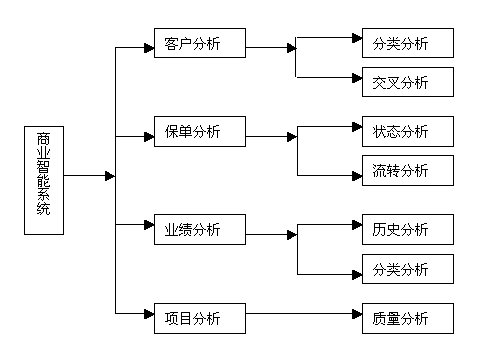 通過商業(yè)智能可以實現(xiàn)對客戶分析、保單分析、業(yè)績分析和項目分析等各項內容進行管理分析。它包含5個決策分析模型以及超過60種的商業(yè)智能分析報表,內嵌式數(shù)據挖掘模型與決策分析報表為電話營銷管理人員提供了有力的分析工具,對于銷售管理起到了定量分析、定性決策的重要支撐作用,支持不同層次的管理者進行不同范圍的決策。其系統(tǒng)架構圖如下: