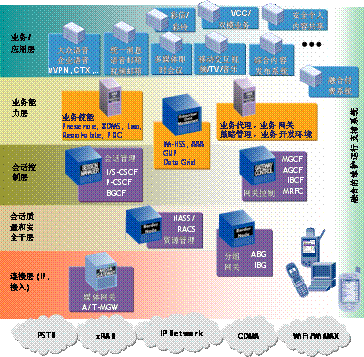 業(yè)務(wù)增強(qiáng)提供建立各種新業(yè)務(wù),融合及混合業(yè)務(wù)的公共能力。它由各種用戶數(shù)據(jù)管理和業(yè)務(wù)發(fā)布環(huán)境的解決方案所組成。用戶數(shù)據(jù)管理覆蓋了目前各移動、固定和IMS系統(tǒng)的用戶數(shù)據(jù)管理,還提供能跨越多網(wǎng)絡(luò)、多業(yè)務(wù)和多領(lǐng)域的統(tǒng)一用戶數(shù)據(jù)管理。業(yè)務(wù)發(fā)布環(huán)境包括了電信級的IMS業(yè)務(wù)平臺和各類業(yè)務(wù)使能(serviceenabler)、業(yè)務(wù)代理(servicebroker)、智能業(yè)務(wù)網(wǎng)關(guān)(ISG),業(yè)務(wù)開發(fā)工具(SDK),策略管理(policy)等功能。它能為IMS業(yè)務(wù)和應(yīng)用所共享,并能混合各類新的、傳統(tǒng)的多媒體的業(yè)務(wù),為運(yùn)營商或第三方業(yè)務(wù)開發(fā)商提供快速、有效的業(yè)務(wù)開發(fā)能力。