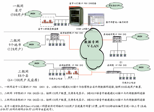 2006年1月18日,中國,上海,――全球企業(yè)通訊解決方案領(lǐng)導(dǎo)者阿爾卡特(巴黎:CGEP.PA,紐約股市:ALA)日前宣布,貴州省檢察院經(jīng)過全面審查,最后選擇阿爾卡特為其部署覆蓋省、市、縣三級98個檢察院的全省 IP PBX語音交換專網(wǎng),實現(xiàn)語音、數(shù)據(jù)和視頻三網(wǎng)合一的應(yīng)用。這個項目將在檢察院系統(tǒng)現(xiàn)有成熟的全省數(shù)據(jù)網(wǎng)絡(luò)基礎(chǔ)上進(jìn)行VOIP語音專網(wǎng)建設(shè)。