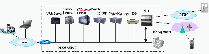 Web800電信級(jí)解決方案為電信運(yùn)營(yíng)商以ASP的模式運(yùn)營(yíng)800業(yè)務(wù)提供了良好的解決途徑。該方案要求電信運(yùn)營(yíng)商安裝Web800 Server、媒體網(wǎng)關(guān)、數(shù)據(jù)庫(kù)等系統(tǒng)核心部件、AAA Server,挑選IP IVR等作為可選部件。Web800無(wú)需更新原有的系統(tǒng)設(shè)施,就可與傳統(tǒng)的800號(hào)業(yè)務(wù)進(jìn)行融合;系統(tǒng)在完成遠(yuǎn)程的IP網(wǎng)絡(luò)傳輸過(guò)程后,經(jīng)過(guò)IP網(wǎng)關(guān),即接入原有傳統(tǒng)800系統(tǒng),將遠(yuǎn)程呼叫擴(kuò)展為基于Web的呼叫方式,同時(shí)又保護(hù)電信運(yùn)營(yíng)商的原有投資,使之延續(xù)。 該方案具有電信級(jí)的高性能指標(biāo):同時(shí)在線最大人數(shù)為10000人/臺(tái);語(yǔ)音質(zhì)量介于固定電話和移動(dòng)電話之間;服務(wù)器無(wú)故障運(yùn)行時(shí)間<5天/年等。系統(tǒng)還具有專門的運(yùn)營(yíng)商管理功能,通過(guò)Web頁(yè)面即可進(jìn)行系統(tǒng)管理、呼叫記錄統(tǒng)計(jì)等。