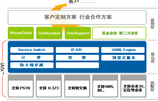 。。"iAfxTM"是一個(gè)融合語(yǔ)音、圖像、消息、多媒體數(shù)據(jù)的分布式通信應(yīng)用架構(gòu),為業(yè)務(wù)處理和應(yīng)用開(kāi)發(fā)提供了全新的概念和良好的環(huán)境,它既充分考慮了對(duì)現(xiàn)階段運(yùn)營(yíng)商網(wǎng)絡(luò)和基礎(chǔ)構(gòu)架的支持,又兼顧了網(wǎng)絡(luò)和通信技術(shù)向下一代發(fā)展的必然趨勢(shì);趇AfxTM架構(gòu),F(xiàn)INESUPPORT®IP呼叫中心既能適應(yīng)現(xiàn)有網(wǎng)絡(luò)環(huán)境,又能向下一代網(wǎng)絡(luò)(NGN)平滑過(guò)渡。