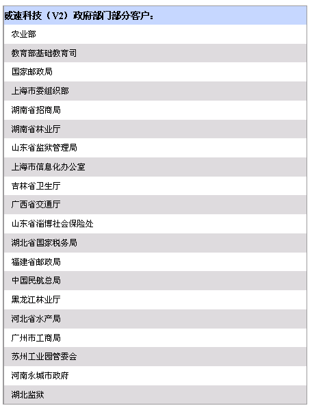 目前,威速科技(V2)在國內(nèi)政府部門的成功應(yīng)用案例還有: