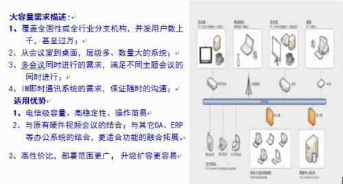 龐大的組織機構和成千上萬的工作人員的數量,使工作信息經過層層的傳達周轉,一個文件和制度落實到最基層,往往要十天半個月。而大中型的組織機構往往對日常溝通協(xié)作、培訓、會議、統(tǒng)一調度需求非常頻繁,傳統(tǒng)的溝通協(xié)作模式耗費大量人力物力和時間,不僅使溝通速度隨之降慢、效率放緩,更使組織機構的會議培訓和差旅費用成本成為企業(yè)節(jié)能增效的阻礙。而傳統(tǒng)電話會議和硬件視頻會議產品因其高投入、難維護的缺陷比使人們越來越傾向于選擇大容量、高穩(wěn)定性、協(xié)同性強、高性價比的軟件視頻會議系統(tǒng)。