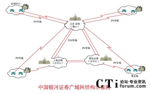 銀河證券采用二級網(wǎng)絡(luò)結(jié)構(gòu),其中一級采用三中心的冗余結(jié)構(gòu);二級為各營業(yè)部。營業(yè)部線路上采用雙專線的冗余線路方式,其中兩條線路分別屬于兩家不同的電信運營商。營業(yè)設(shè)備上采用雙設(shè)備,保證了營業(yè)部在設(shè)備上的冗余,避免硬件設(shè)備單點故障,同時實現(xiàn)了業(yè)務(wù)網(wǎng)與辦公網(wǎng)的物理分離。