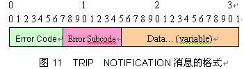 除去TRIP固定的消息頭外,NOTIFICATION消息的格式如圖11,其最小的長度為5個(gè)字節(jié)。