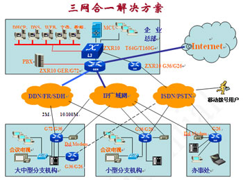 中興通訊具有豐富的數(shù)據(jù)、視訊、語(yǔ)音網(wǎng)關(guān)等設(shè)備,能提供端到端的語(yǔ)音、數(shù)據(jù)、視訊三網(wǎng)合一解決方案。企業(yè)內(nèi)部電話/視訊長(zhǎng)途走自己的數(shù)據(jù)網(wǎng),節(jié)約費(fèi)用;組成語(yǔ)音VPN/視訊 VPN,多種手段保證Qos。