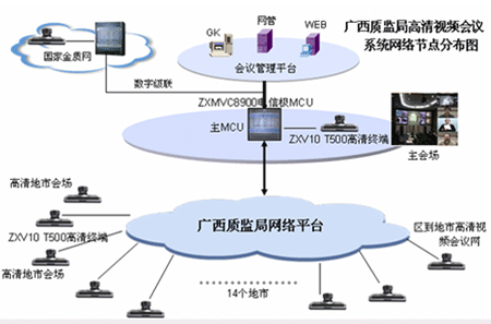 根據(jù)國家“金質(zhì)工程”五年規(guī)劃,結(jié)合廣西壯族自治區(qū)質(zhì)量技術(shù)監(jiān)督局實(shí)際情況,廣西“金質(zhì)工程”(一期)的建設(shè)目標(biāo)非常明確:以區(qū)質(zhì)監(jiān)局為核心,連接3個(gè)下屬研究院、14個(gè)地市質(zhì)監(jiān)局和1個(gè)產(chǎn)品質(zhì)監(jiān)院的質(zhì)監(jiān)業(yè)務(wù)專網(wǎng),支持?jǐn)?shù)據(jù)、語音和視頻業(yè)務(wù)的統(tǒng)一系統(tǒng)平臺(tái)。并以此平臺(tái)為基礎(chǔ),實(shí)現(xiàn)多業(yè)務(wù)的綜合接入,如質(zhì)監(jiān)信息的建立、管理、查詢,以及IP語音、視頻會(huì)議等。